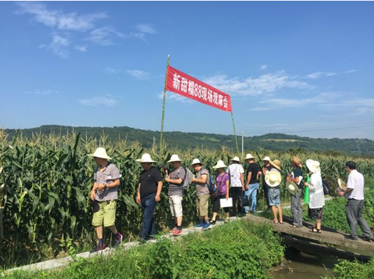 与会人员观摩了位于新中畈的“新甜糯88”的田间生长情况。 新昌县种子公司还与杭州绿娃娃种子有限公司、南京绿领种业有限公司现场签订了经销协议。