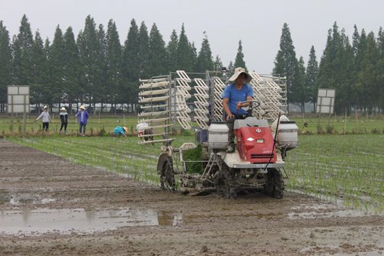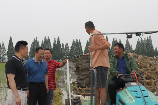 田间展示工作由庐江县农业执法大队和庐江县农业技术推广中心承担。为期4天的机插秧工作日前已近尾声。6月13日上午省种子管理总站周建生科长一行亲临展示基地,考察并指导水稻新品种展示机插秧工作,省种子协会副秘书长叶飞等陪同。