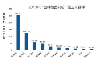 广西玉米种植面积虽大,但是种植地区生态气候条件复杂,玉米生长面临高温高湿、土地瘠薄、保水保肥能力差等不利因素,时常发生干旱,玉米贮藏条件、方式特殊,因此,广西大田玉米的一个重要特点就是品种多,不同的区域种植不同的品种。