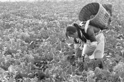 目前,西兰苔在该区主要种植基地在宋家乡。图为当地村民正在对西兰苔进行采摘,采摘后的西兰苔将以最新鲜的状态销到市民手中。范烨摄