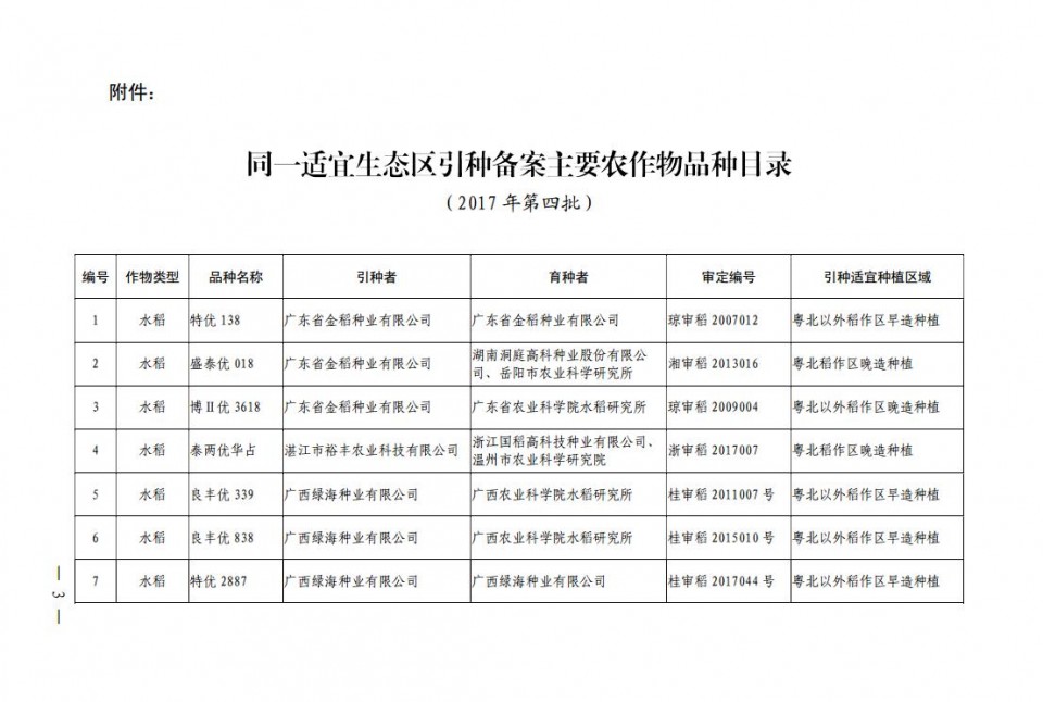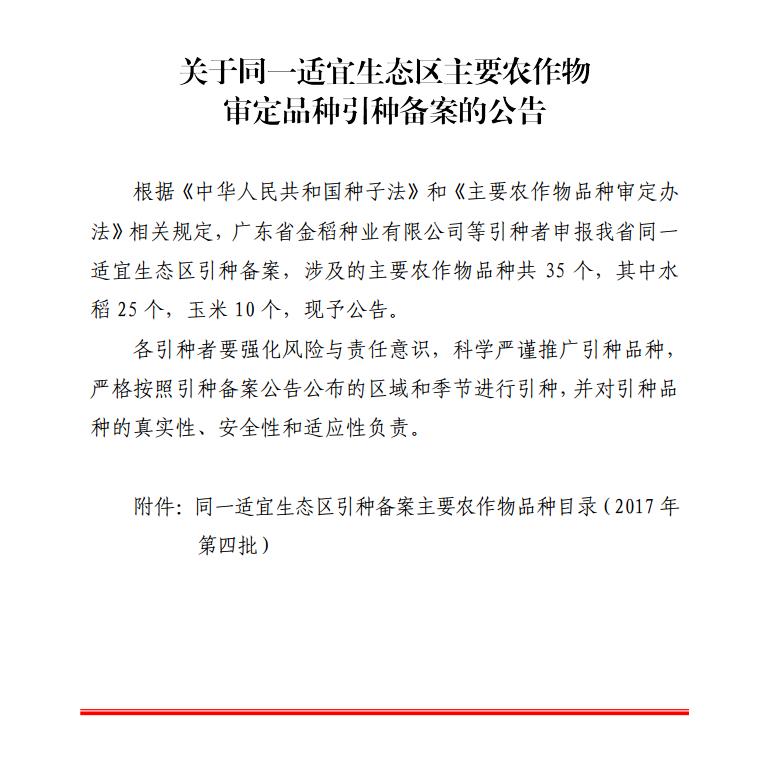 关于同一适宜生态区主要农作物审定品种引种备案的公告