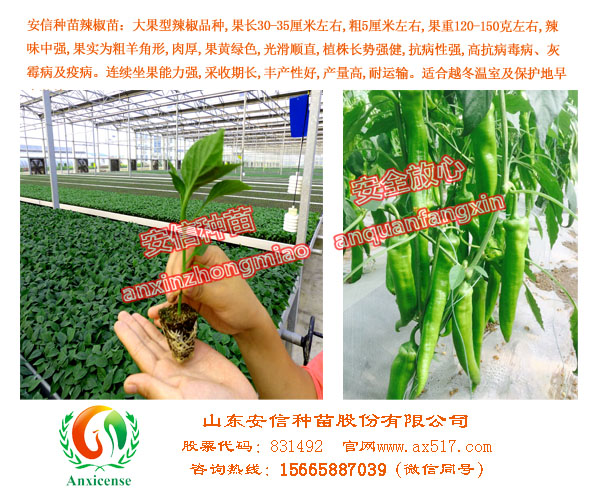 山东安信种苗股份有限公司国内大型蔬菜育苗单位.现在成为蔬菜育苗行业的龙头老大.公司总占地面积500多亩,是全国育苗行业实力最强的种苗企业。辣椒苗,首选安信种苗,让您买的放心,收收获的开心!