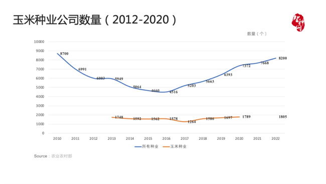 据农业部数据,从 2011 年到 2014 年,国内种企的总量从 8700 多家锐减至5200 多家,减幅高达 40%,到 2023 年,有回到 8000 多家。在种子研发、生产的集中度不断提高的背景下,做不到育繁推一体化的中小种企面临着严峻挑战,但并非只有死路一条。和国内外种业巨头相比,中小种企也有着自己的优势,只要将这些优势发挥出来,中小种企仍有可能在激烈的市场竞争中占有一席之地。