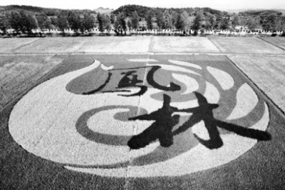 大地做画板,采取直接抛秧或者十字绣方法进行彩色稻图案种植。