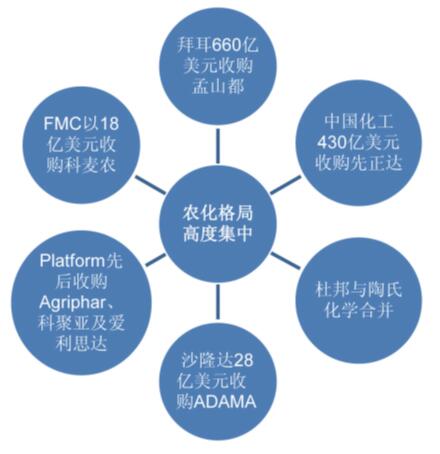 相比之下,肥料领域的并购规模不是很大,但是也在有序推进中。2016年,全球最大钾肥生产商PotashCorp 与其竞争对手化肥巨头Agrium Inc宣布合并,合并后的价值达 360 亿美元。2015 年,CF 工业公司以 80 亿美金的价格收购北美和欧洲OCI以建立世界上最大的氮肥公司。