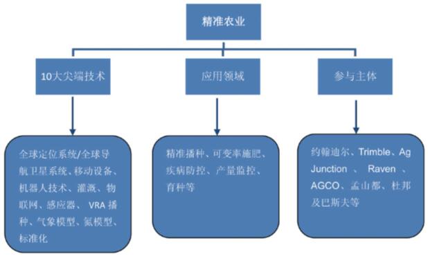 伴随着现代技术的飞速发展和农业资源的日益紧缺,目前,全 球范围内都在进行着农业技术的革命,更符合时代需要的新型农业 形式不断涌现,如精准农业、立体农业、生态农业、白色农业等等。其中,具有大幅度优化农业生产力的精准农业有望进入飞速发展期 (主体构成如图4所示)。