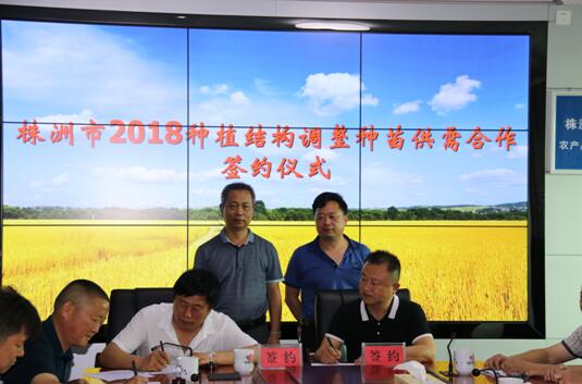 5月18日,株洲市种植结构调整种子种苗项目4个中标企业,与8个有结构调整任务的县市区农业局订了产需合作协议。“结构调整,种苗先行”迈出了坚实的第一步。