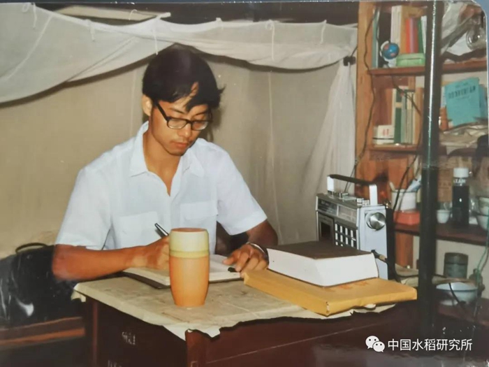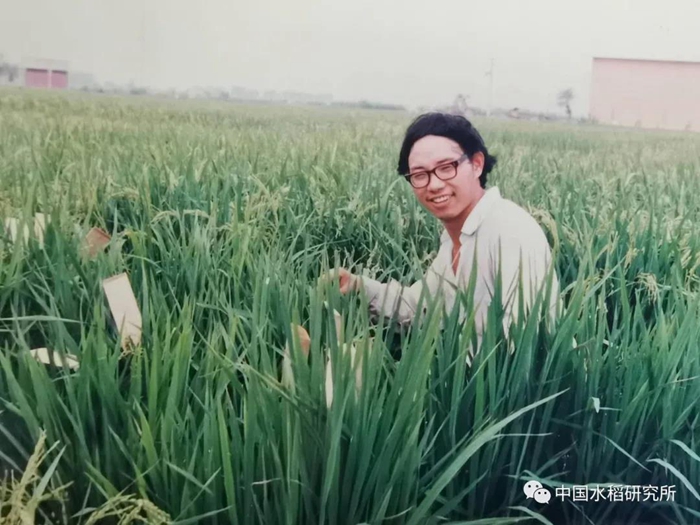 上世纪八十年代,程式华在富阳基地田间做水稻杂交