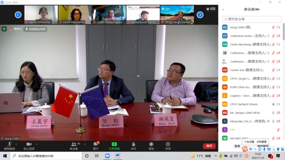 11月3-5日,中心与欧盟植物新品种保护办公室(CPVO)、IPKey China联合主办2021 IPKey植物新品种权技术培训班在线举办。来自我国农业、林业植物新品种保护测试体系的90多名代表参加,中心植物新品种测试处陈红处长出席开幕式并致辞。