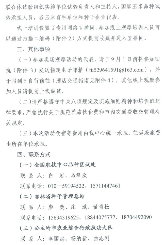 (二)培训交流玉米品种区试审定管理政策、生物育种、前沿技术等。