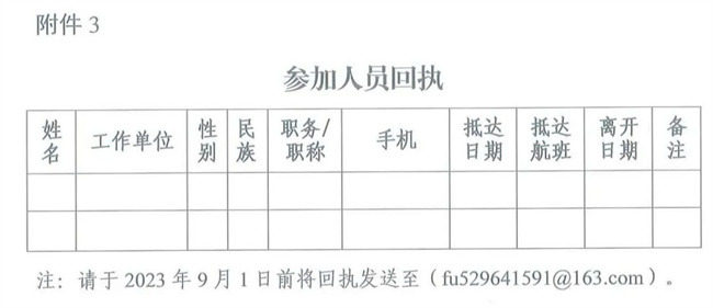 (一)参加现场观摩活动的代表,请于9月1日前将参加回执(附件3)发送指定电子邮箱(fu529641591@163.com),并于报到日自行前往(酒店交通指南见附件4),其他线上观摩参加人员请提前上线调试。