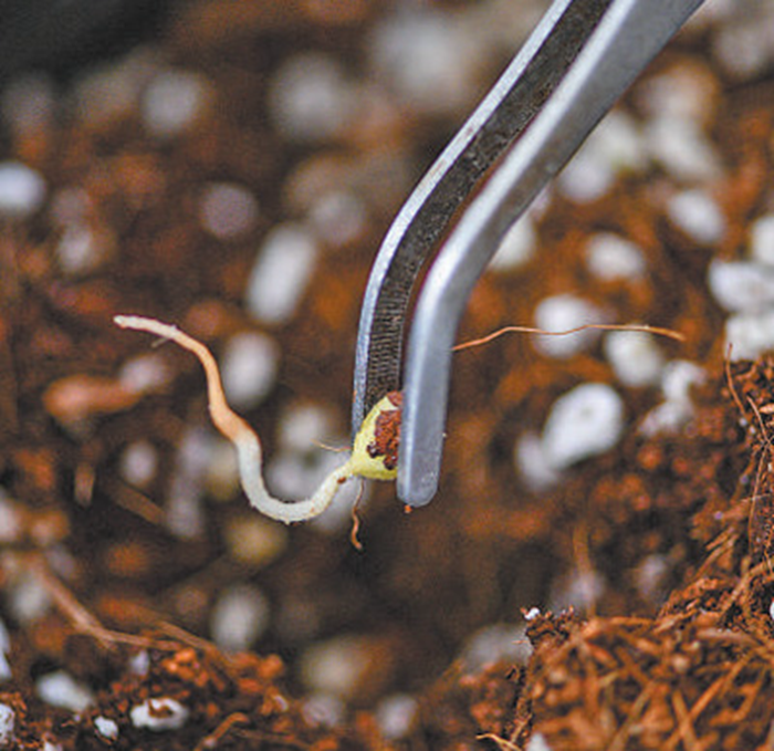 云南省锦科花卉工程研究中心里发芽的太空种子。 新华社记者 江文耀摄