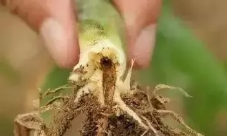 玉米根腐病是腐霉菌引起的病害,主要表现为中胚轴和整个根系逐渐变褐、变软、腐烂,根系生长严重受阻;植株矮小,叶片发黄,幼苗死亡。