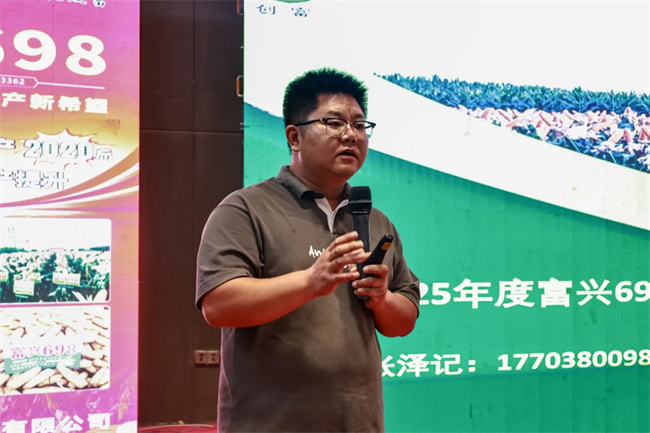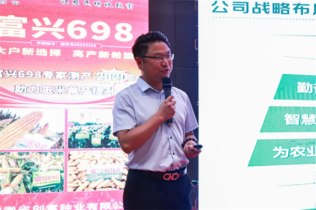 在多年多地种植表现来看,富兴698综合抗病好,强抗倒,抗逆强、结实性好,高产稳产,种植密度可塑性好,品质优的六大优势获得广大农户的认可和喜爱,及经销商放心大胆推广。会上,创富种业富兴玉米团队负责人张泽记围绕当前玉米生产现状、生产中存在的主要问题及解决措施,分享了如何充分发挥富兴698六大优势,布局重点市场,打造优势示范区域,进一步提高影响力。同时,他说,希望大家继续以饱满的热情,加大品种宣传力度,让优良品种惠及到更多的农民朋友!