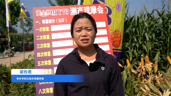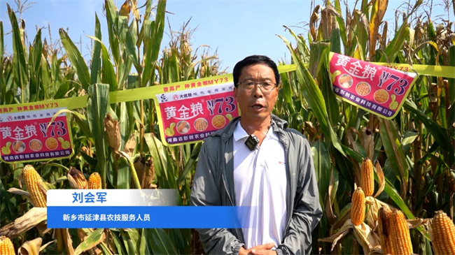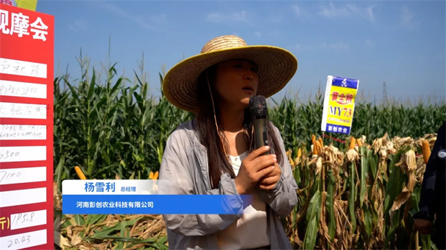 测产会上,河南彭创农业科技有限公司总经理杨雪利分享了黄金粮MY73的“小棒子,大产量”的品种优势,强调了根据品种特性和管理水平合理密植的高产技术要求。