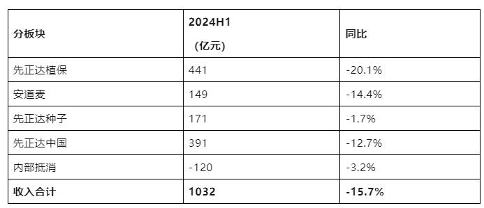 2024年上半年先正达集团营业收入为145亿美元,同比下降17%,EBITDA为21亿美元,同比下降36%。