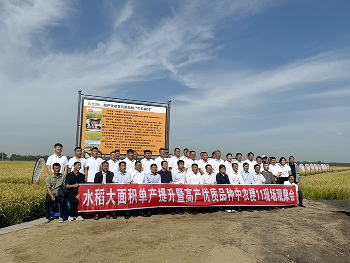 9月9日,由中国农业科学院作物科学研究所主办的水稻大面积单产提升暨高产优质新品种中农粳11现场观摩会在黑龙江省佳木斯市举行。滚滚稻浪,阵阵稻香,在宝山农场4队的百亩示范田,已进入灌浆结实期水稻新品种中农粳11,沉甸甸的稻穗摇曳在秋风里。与会专家和种植户,对水稻新品种中农粳11表现出的高产和抗病、抗倒伏特性表示肯定。