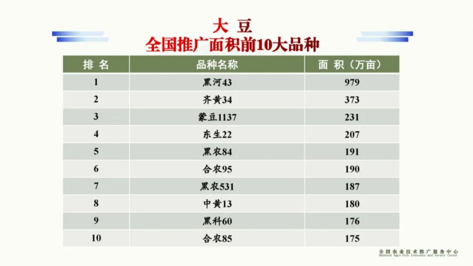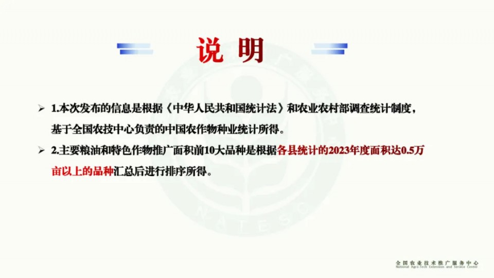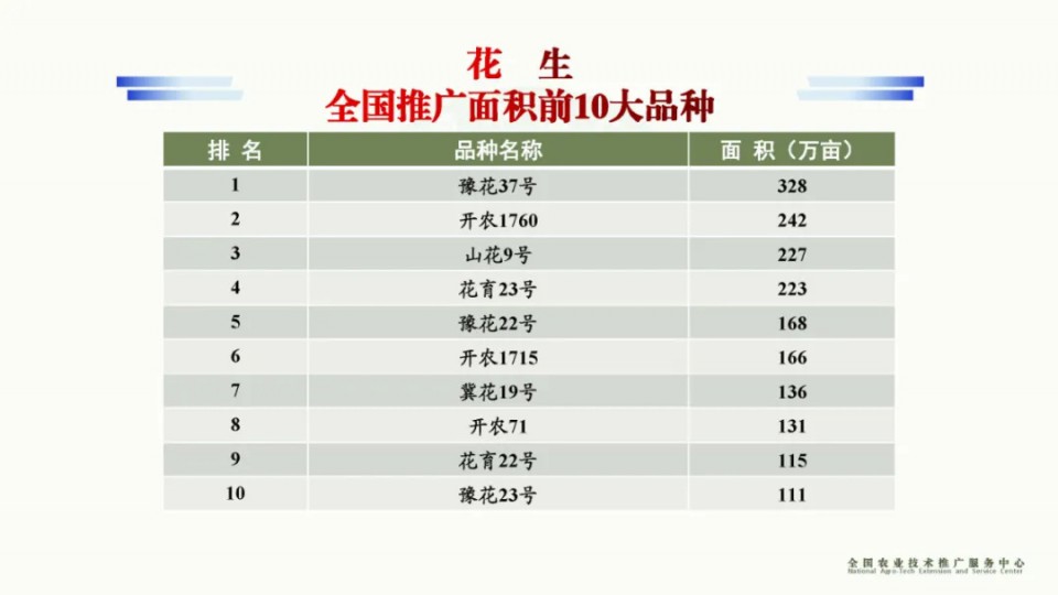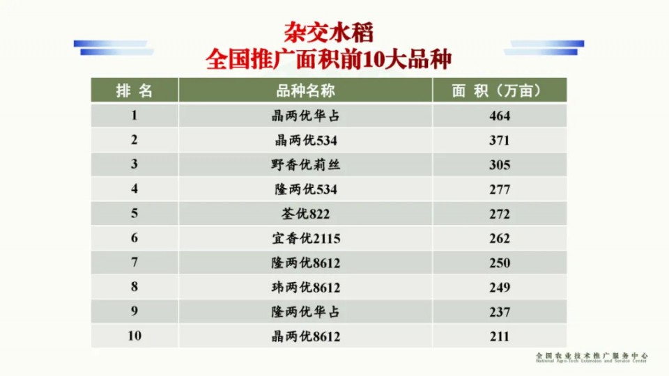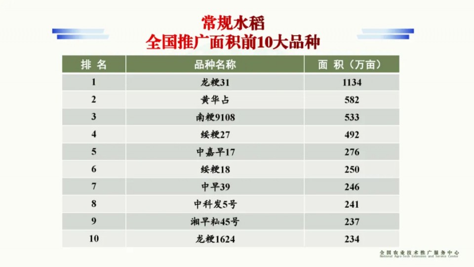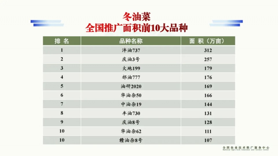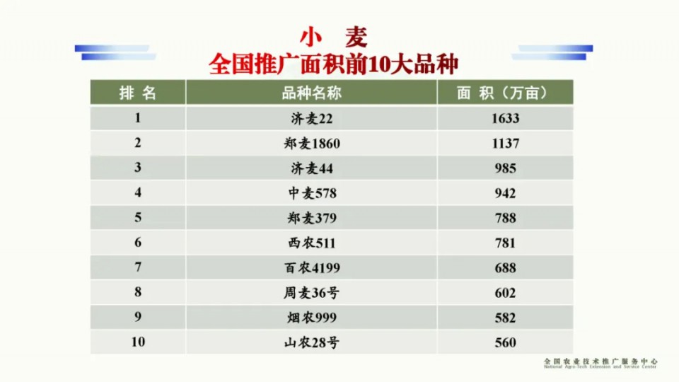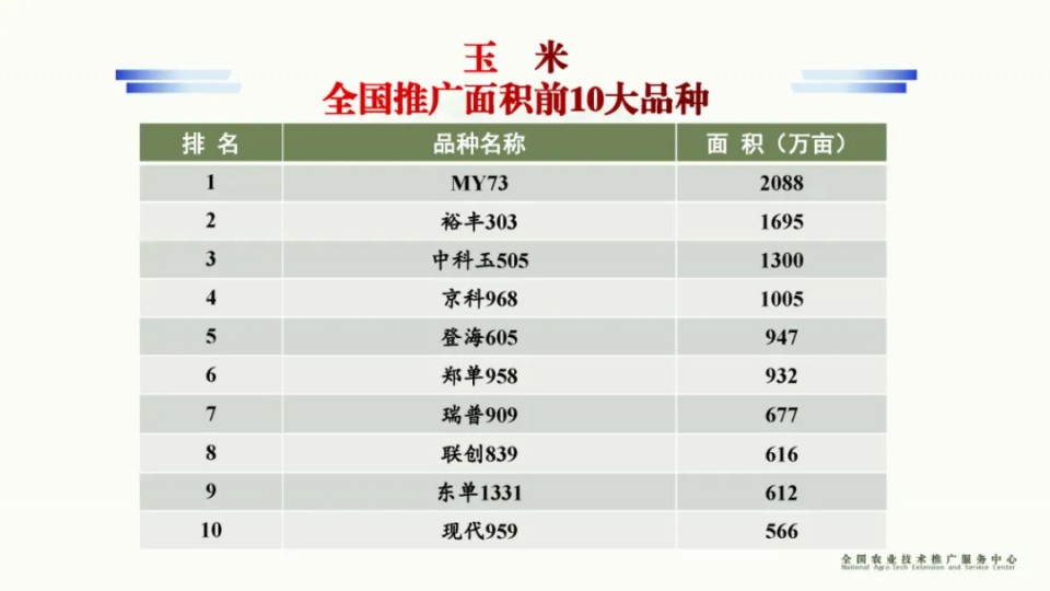 双交会上,全国农技中心发布了2023年度农作物种植面积前十大品种: