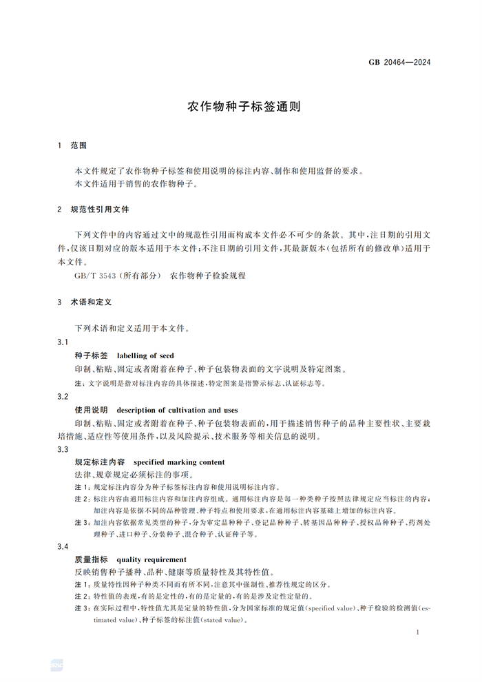 • 山西省《省级农作物种质资源库(圃)管理规范》