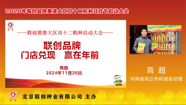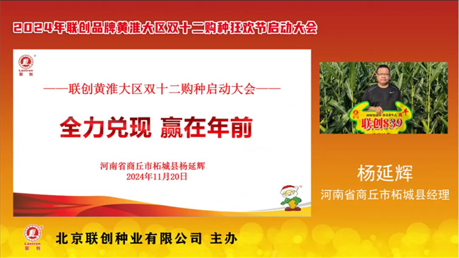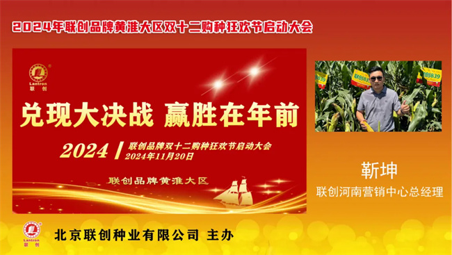 兑现大决战,赢胜在年前!在种业发展的征程中,每一个节点都至关重要。为加快兑现进度,尽早兑销入户,2024 年11月20日,2024-2025 年度北京联创种业联创品牌黄淮大区双十二购种狂欢节启动大会线上会议隆重召开。