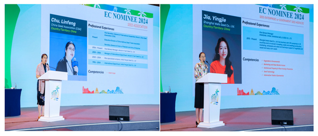 同时,我们也向任期届满卸任的两位中国执委,中国种子协会副秘书长杨雅生先生与武汉庆发禾盛总经理朱晓波女士表示衷心的感谢!对他们的出色工作表示崇高的敬意!