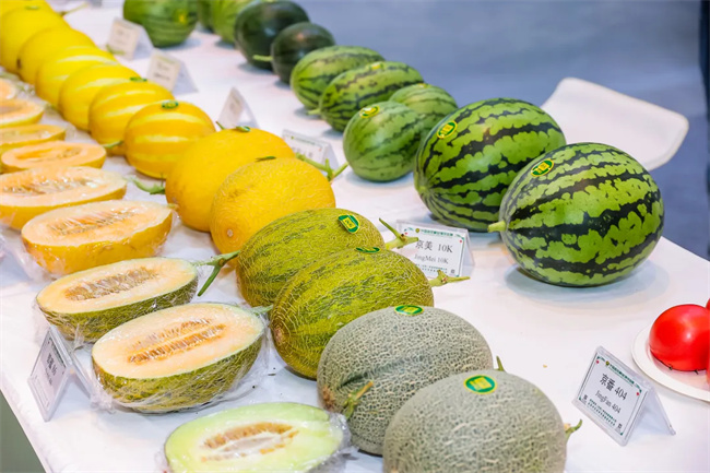 松花型西兰花、酸甜口的甜瓜、皱叶羽衣甘蓝、各式优质杂交水稻和鲜食玉米……在本次大会的展览展示区,众多优新品种吸引国内外客商驻足询问。