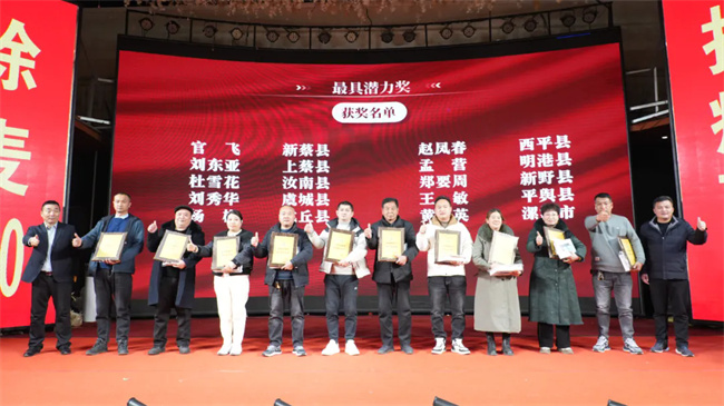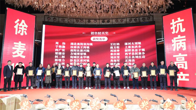 2024年,小麦种子市场是极为惨淡的一年,凭借徐麦100卓越的品质和各位合作伙伴的市场开拓能力,公司为在2024年销售业绩突出的经销商,会议现场为他们举行了隆重表彰仪式,以激励更多的合作伙伴向榜样学习,向先进靠拢。