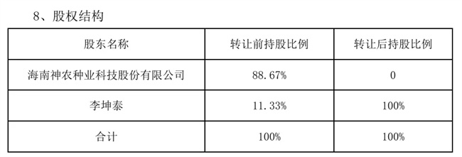 据公告,神农种业拟向李坤泰转让公司持有的全部88.67%股份,转让后持股比例将降为0。