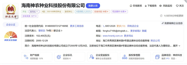 今年7月刚更名为神农种业