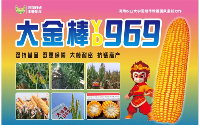 大金棒-YD969是由河南慧博科瑞迪农业科技有限公司联合河南农业大学汤继华教授团队共同选育的丰产性突出、抗逆性强、综合抗性好、耐密、广适的玉米新品种。
