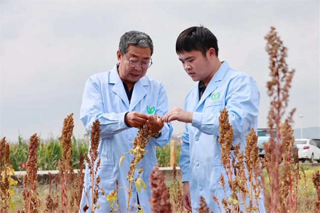 江苏省淮安市农科院的科技工作者正在查看成熟后的“太空粮食”藜麦。
