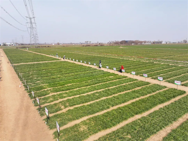 宋总一行实地查看了机麦211的生长情况。宋总介绍,机麦211作为公司的主营小麦品种之一,具有诸多优良特性。该品种属于半冬性品种,苗齐苗壮,叶色深绿,冬季抗寒性好,分蘖能力强,成穗率高,株高约78厘米,抗倒性强,整齐度好,穗层整齐,耐后期干热风,熟相好。参观期间,宋总详细介绍了机麦211的产量表现和抗病性。该品种产量三要素协调,增产潜力大,两年区试平均产量较对照增产7.0%以上,生产试验产量较对照增产5.3%,综合抗性好,特别是对小麦的主要病害——锈病有很好的抗性。