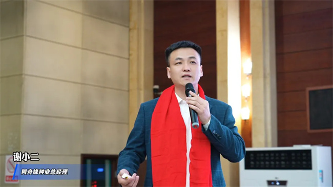 活动伊始,同舟缘种业董事长韩爱民致开幕词。他深情回顾公司从创立之初的艰难起步,到如今成为集科研、生产、销售、技术服务于一体的种业领军企业的历程。二十年间,同舟缘种业凭借对种子事业的执着追求、对科技创新的高度重视以及对市场规律的精准把握,一路披荆斩棘,取得令人瞩目的成就。韩总的话语中,既有对过往奋斗岁月的自豪,也有对未来创新发展的坚定信念,让在场嘉宾深切感受到同舟缘人对种业的热爱与担当。