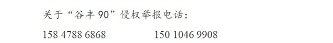 自2025年3月17日起,任何单位或个人在未获得我公司书面形式重新授权的情况下,擅自开展“谷丰90”生产、经营活动的,均构成恶意侵权,我公司将依法追究其法律责任,并要求其承担相应的惩罚性赔偿责任。我公司保留采取一切法律手段维护自身合法权益的权利,追究侵权者的一切法律责任,包括但不限于刑事责任。