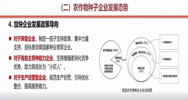 1.对于阵型企业,制定一揽子支持政策,集中力量支持,目标是培育国家种业领军企业。