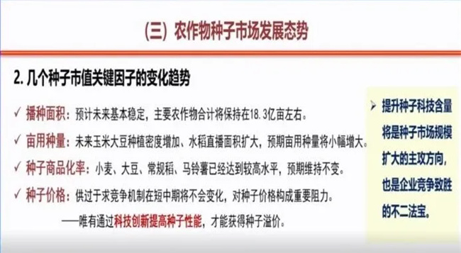 提升种子科技含量将是种子市场规模扩大的主攻方向,也是企业竞争致胜的不二法宝。