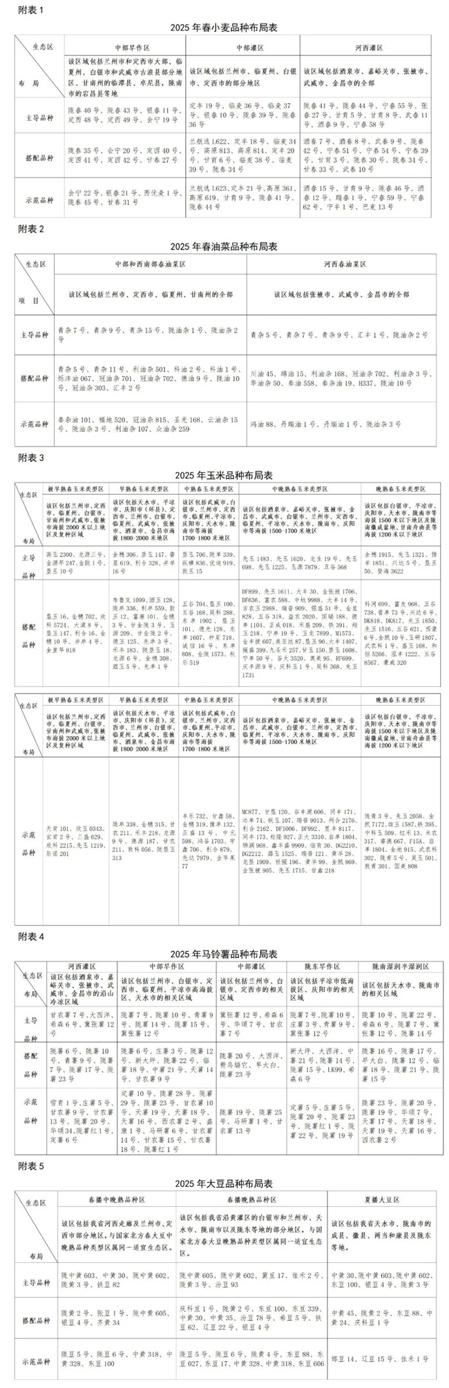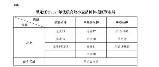 (一)小麦。按照南疆冬小麦区、北疆冬小麦区、伊犁河谷冬小麦区、春小麦区四个种植区进行布局。主导品种16个,其中:1.南疆冬小麦区。主导品种(6个):新冬22号、新冬60号、新冬59号、新冬55号、中麦578、新粮804;2.北疆冬小麦区。主导品种(8个):新冬22号、石冬0358、新冬53号、新冬52号、九圣禾D1508、金石农1号、石冬01162、新粮169;3.伊犁河谷冬小麦区。主导品种(3个):石冬0358、新冬52号、九圣禾D1508;4.春小麦区。主导品种(3个):粮春1354、新春37号、核春115。