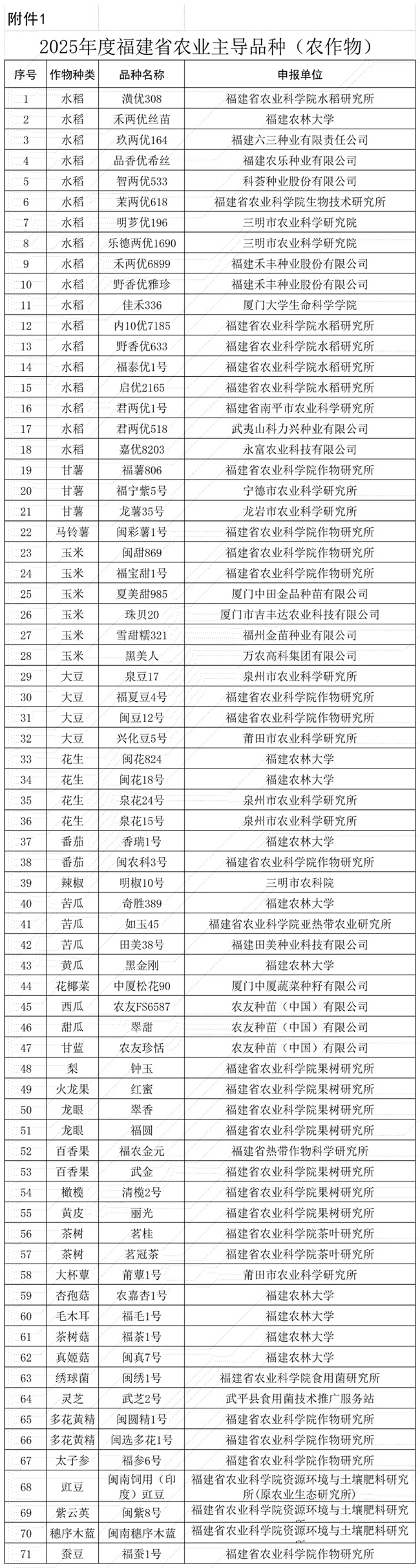 为进一步加快农业优良品种推广应用,促进各地粮食作物大面积单产提升、围绕农业绿色优质高效和乡村振兴发展需要,突出提高农业生产效率和效益导向,择优推荐主导品种和主推技术。2025年,全国各省根据当地实际情况,推荐主推品种和主推技术,现将新疆、内蒙古、吉林、黑龙江、广东省、江西省、广西壮族自治区、四川省、贵州省、江苏省、海南省、浙江省、福建省、湖北省、河北省、辽宁省、甘肃省、陕西省、山西省、云南省、宁夏回族自治区、重庆市、青海省主推品种汇总如下:
