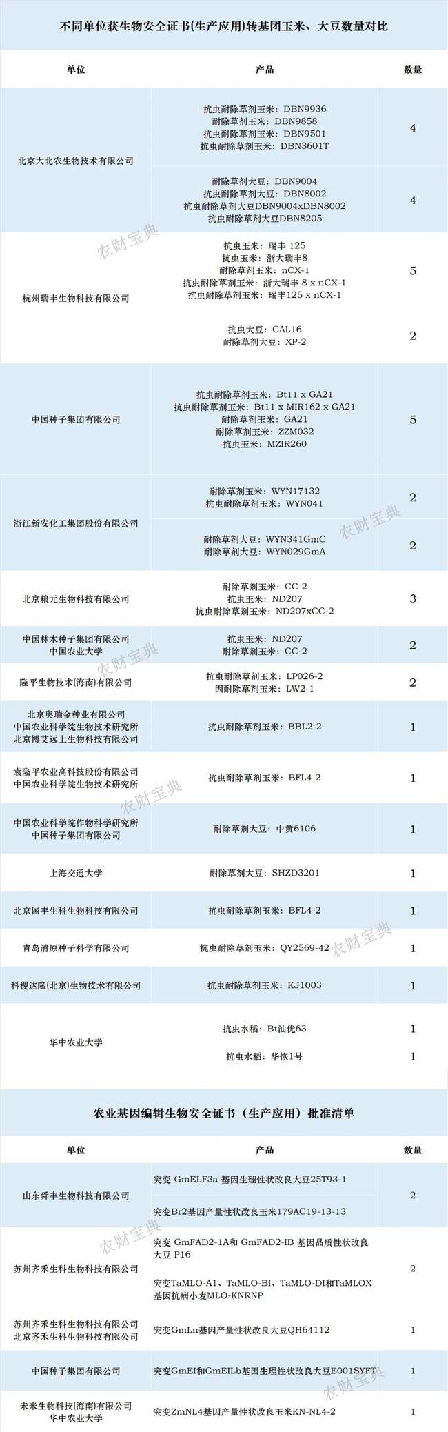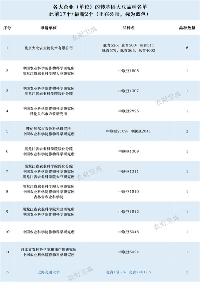日前,最新一批拟通过国审的转基因玉米、大豆品种公示。农财君对名单进行了统计,从中一窥国内转基因品种的最新分布: