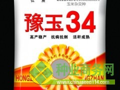 豫玉34具有八大卖点: 1、高产稳产 一般亩产768公斤(即1536斤),高产可达900公斤以上,具有1000公斤以上的高产潜力,比郑单958增产 2、多抗广适 高抗粗缩病、大小叶斑病、青枯病、黑粉病,高抗倒伏(因为它的茎杆坚韧、气生根发达),抗逆性强,适应性广。 3、结实性好----不秃尖(原因就是花粉量大,授粉期长,一般在一周左右,抗逆性好。) 4、出籽率高----89%以上。(轴细、棒粗、穗匀) 5、耐密性好, 适宜密度3500—4000株/亩 6、国家保护,独占经营豫玉34已通过河南、安徽、陕西三省审定, 2007年被河南省科技厅评为高新技术产品。 7、四种防伪,利润合理 8、市场保护,无风险经营。豫玉34的生产经营权已由弘展公司独家买断。