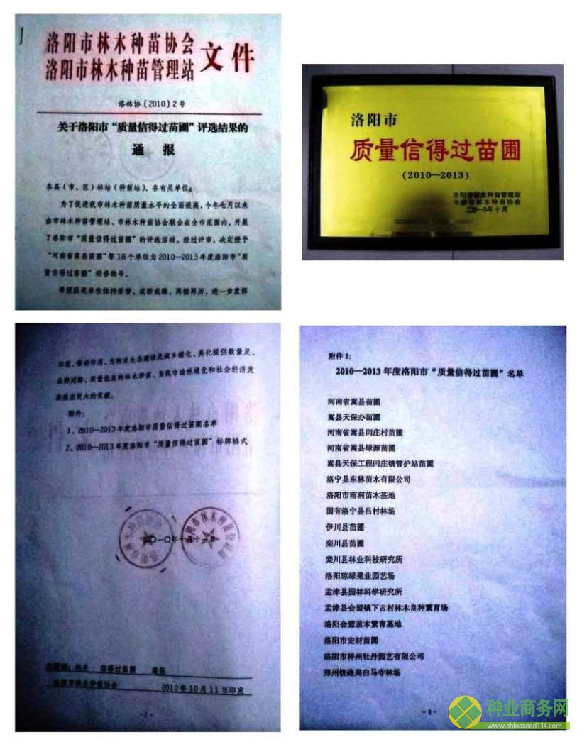 | 发证机构: | 洛阳市林业种苗协会、洛阳市林木种苗管理站 | 发证时间 : | 2010-10-11 |