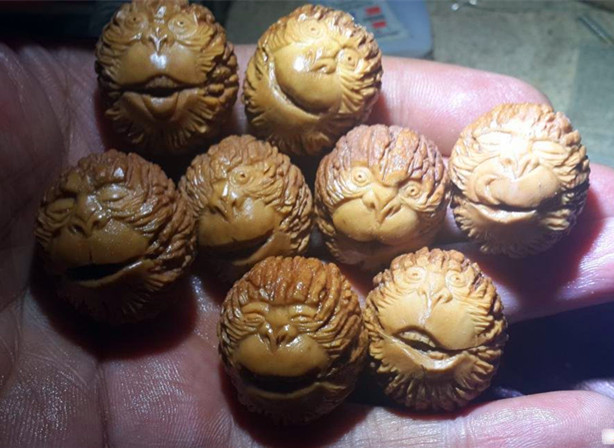 近年来,广大文玩核友、佛界人士、收藏爱好者,把玩、收藏猴头核桃工艺品的热情不断持续升温。今年恰逢农历丙申猴年,更激起了一波追捧猴头核桃的热潮。猴年伊始,许多爱好者在微信圈晒宝,为自己淘来的一批、一串甚或仅仅一粒猴头核桃精品,而窃喜、而显摆。猴年喜得象征着聪明、活泼、机敏、忠贞、勇敢的瑞猴佛珠,属猴者似得一同伴,自然是吉祥之物;不属猴者得之,也可驱邪护身,希冀腾达、安康。