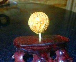 1. 果形圆,更适宜表现圆润、丰盈、饱满的题材。虽然美国猴头核桃果形能达到正圆或矮桩的也是极少数,但总体上要比目前大量采用的核雕原料——橄榄核圆得多。稍加留心可以看出,橄榄核雕的人物形象大多偏于瘦削型。而美国猴头核桃正好可以弥补橄榄核的不足,非常适用于雕刻圆润、丰盈、饱满的题材,例如寿星、弥勒佛、不倒翁、淑女、萌娃、美猴王、猴宝宝等,人物形象更加雍容、大度、富贵、可爱。