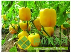 进口杂交一代高档黄色甜椒品种,植株生长中等,抗性强,正常栽培条件下,果实方形且均匀,平均果长