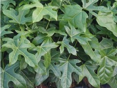 叶:叶互生,掌状裂叶7-9裂,裂片再呈羽状深裂,先端锐尖,革质。