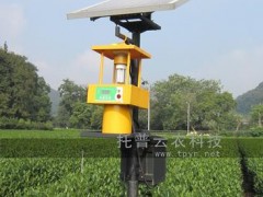 托普云农研发生产的农用杀虫灯,该仪器采用频振诱控技术,可以电网过流短路保护,并且可以根据昼夜自动开关等,农用杀虫灯杀虫种类广,可诱杀多种蔬菜害虫,如斜纹夜蛾,甜菜夜蛾、银纹夜蛾、烟青虫、黄条跳甲,蝼蛄等。农用杀虫灯的杀虫机理是运用光、波、色、味四种诱杀方式杀灭害虫。近距离用光,远距离用波,加以黄色外壳和味,引诱害虫飞蛾扑灯,外配以频振高压电网触杀。在杀虫灯下套一只袋子,内装少量挥发性农药,可对少量未击毖的蛾子熏杀,从而达到杀灭成虫、降低田间产卵量、减少害虫基数、控制害虫危害蔬菜的目的。