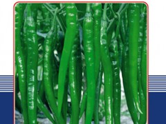 韩国原种进口。早熟品种,青果深绿,红果鲜艳,果长22-26cm,果肩1.5--1.8cm,果光亮顺直,空腔小,辣味浓香,青红果两用,叶片小,长势旺,坐果能力强,特抗病,耐高温,中后期上部果部不变短,特耐运输,是基地栽培的理想品种。