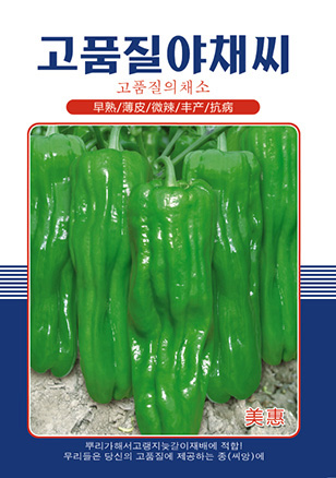 韩国原种进口。一代杂交,极早熟,耐低温,耐弱光,果长灯笼形,表皮邹褶,翠绿色,粗4--5厘米,坐果集中,连续结果性强,单果种100--120克,大果可达150克,后期不早衰,膨果速度快,皮薄味辣,商品性好,风味俱佳,市场喜欢,丰产,抗病,亩产可达4500--5000公斤,好管理,易栽培,适宜我国早春大棚保护地,小拱棚,露地,丘陵山区栽培,秋延栽培表现更佳。综合性状表现超越芜湖椒,苏椒五号。