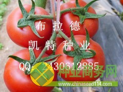 大红果番茄,一代杂交,无限生长型,生长势强,节间中等,座果容易,果实均匀,果圆形稍扁,