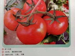 荷兰引进,杂交品种,无线生长型,大红色,植株长势旺盛,叶片适中,颜色鲜红亮丽,花絮多坐果率高,果型高圆,果实大小均匀,单果重260-300克左右,产量高,抗病能力强,高抗TY病毒,叶霉病,耐根结线虫,适合早春,秋延和保护地种植。